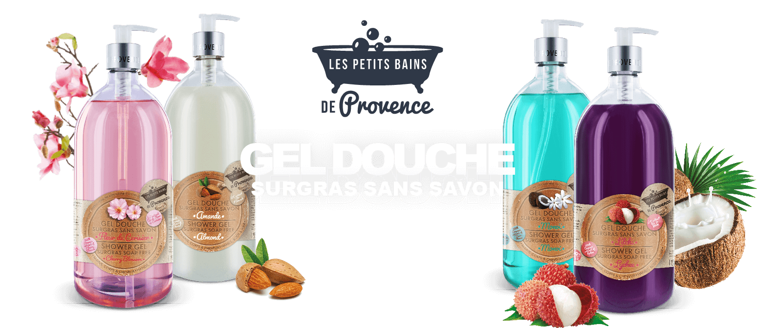 C’est en Provence que nos Savons Liquides de Marseille et nos Gels Douche sans savon sont nés. Installée en Provence, AGETI France a créé une gamme de produits d’hygiène inédite, vendue exclusivement en Pharmacie et Parapharmacie : « Les Petits Bains de Provence ». AGETI France propose ainsi une gamme de Savons liquides de Marseille pour mains et corps et une gamme de Gels Douche sans savon pour mains, corps et cheveux aux multiples senteurs. Testés sous contrôle dermatologique, ces produits d’hygiène sont produits en Provence et sont élaborés à partir de matières premières d’origine naturelles sélectionnées et garanties sans Paraben, sans huile de palme et sans graisse animale. Découvrir